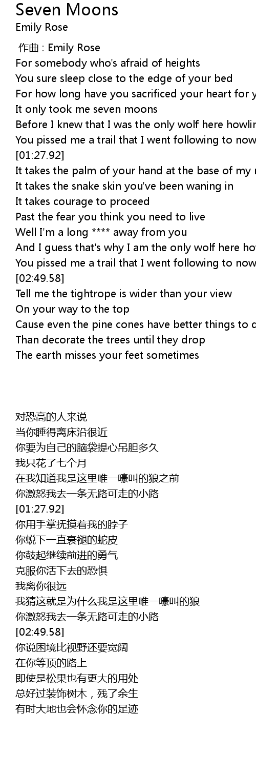 | [00:52.60] | It only took me seven moons |