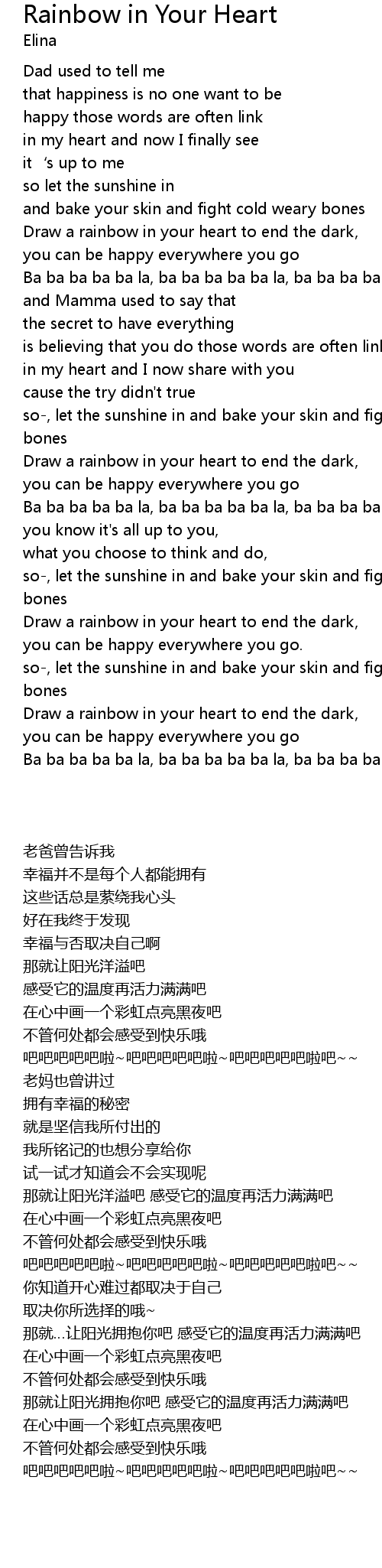 | [00:33.490] | Draw a rainbow in your heart to end the dark, |