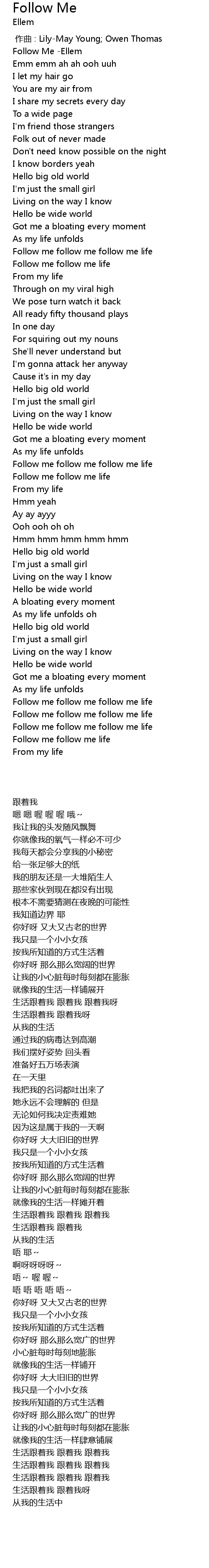 | [00:00.817] | Follow Me Ellem |
