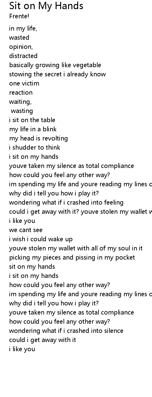 | [01:51.729] | could i get away with it? youve stolen my wallet with all of my soul in it picking my pieces and pissing in my pocket |