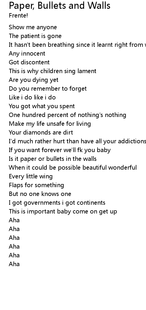 | [01:05.99] | Is it paper or bullets in the walls |