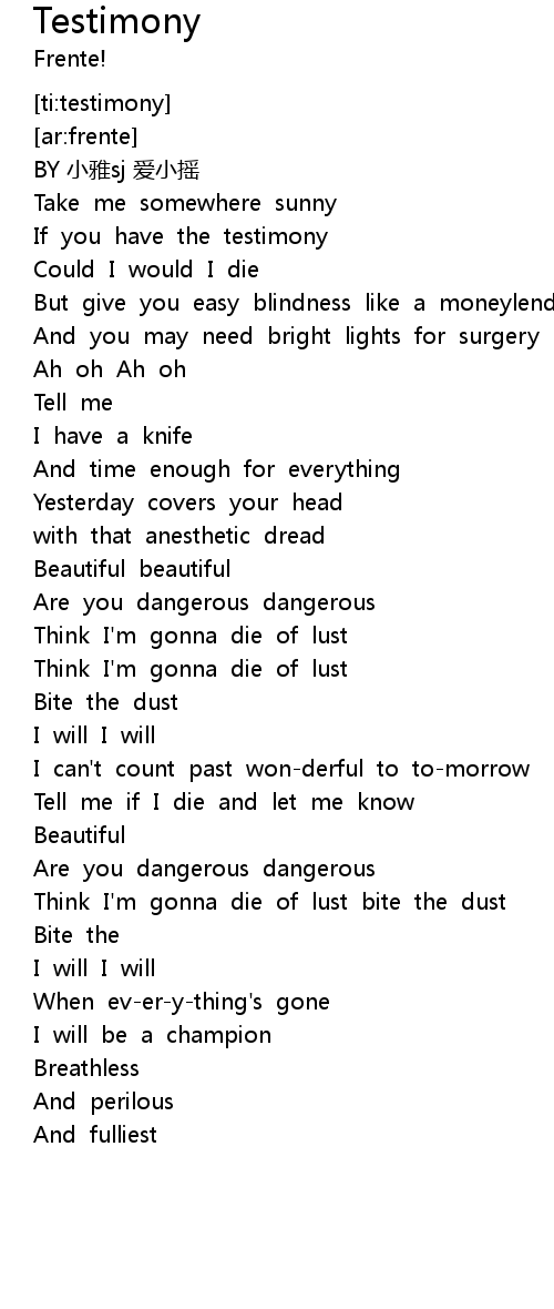 | [01:04.590] | Think I'm gonna die of lust bite the dust |