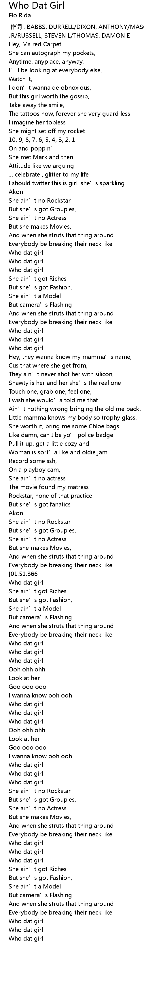 | [00:50.91] | Who dat girl |