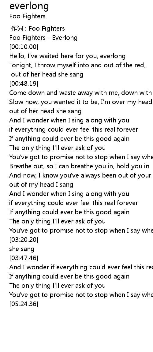 | [00:23.93] | Hello, I' ve waited here for you, everlong |