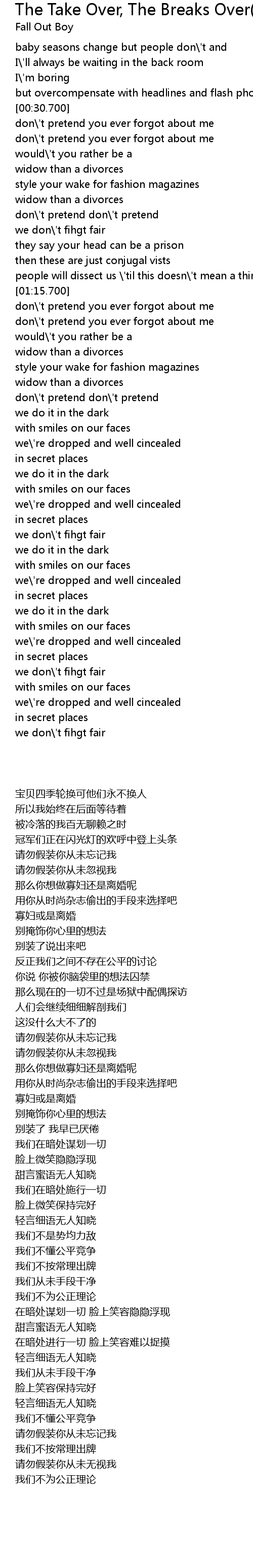 Song The Take Over, The Breaks Over(2007 - Live At The Cricket Pavillion)