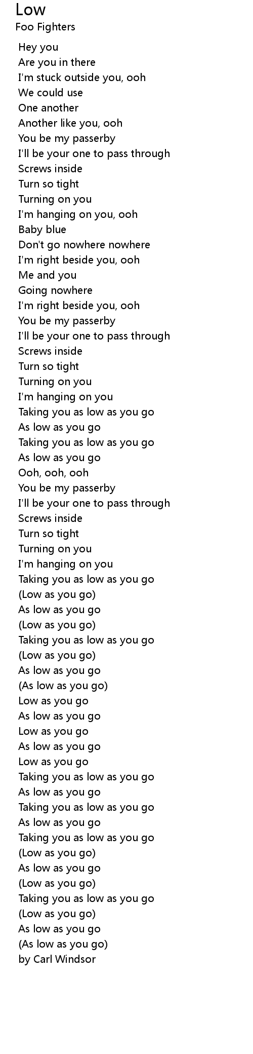 (Low as you go) |