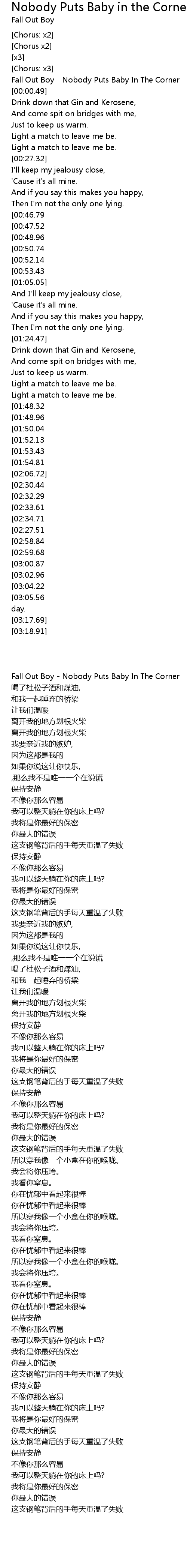Fall Out Boy - Nobody Puts Baby In The Corner |
