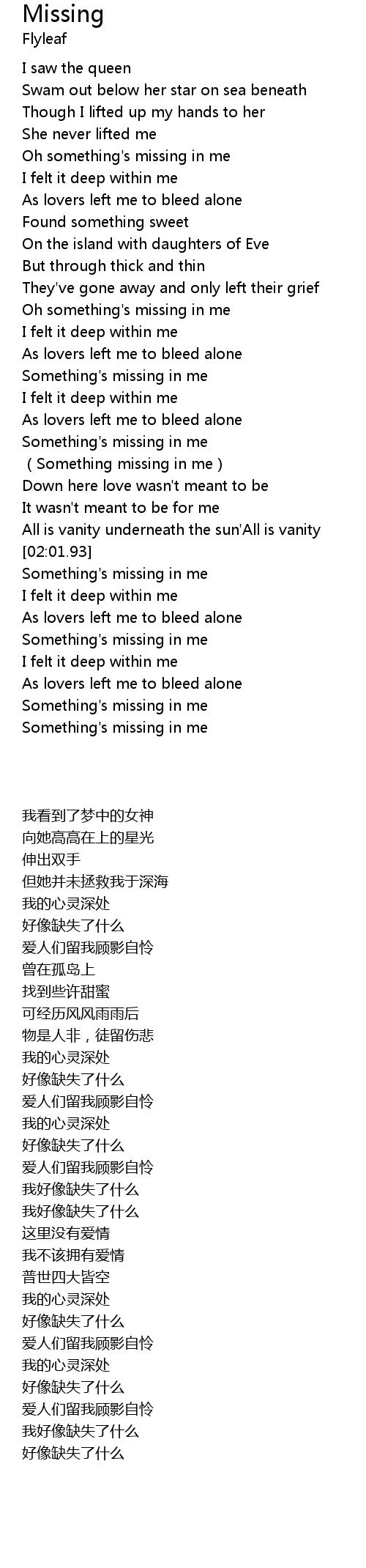 | [02:37.48] | Something's missing in me |