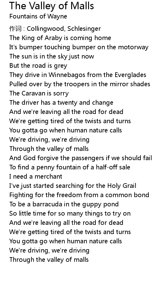 | Song | The Valley of Malls |