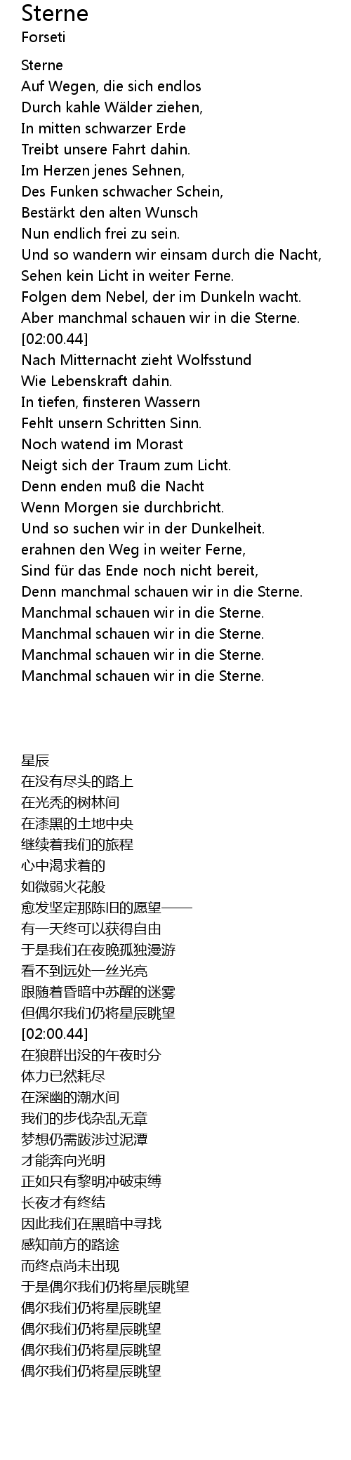 | [03:32.53] | Denn manchmal schauen wir in die Sterne. |