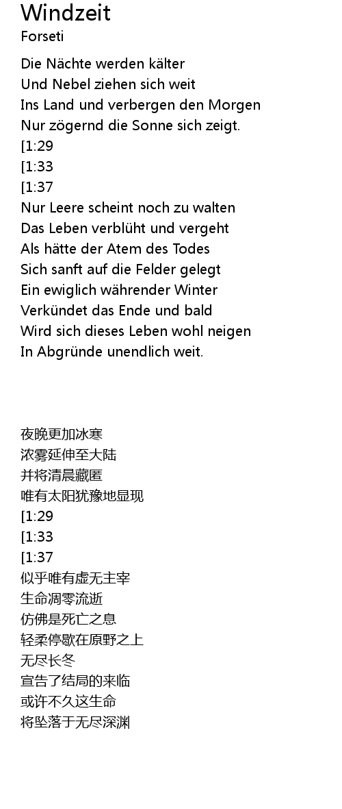 | [00:48][1:33][2:48][3:18][3:25] | Windzeit, Wolfszeit, am Himmel tobt Sturm |