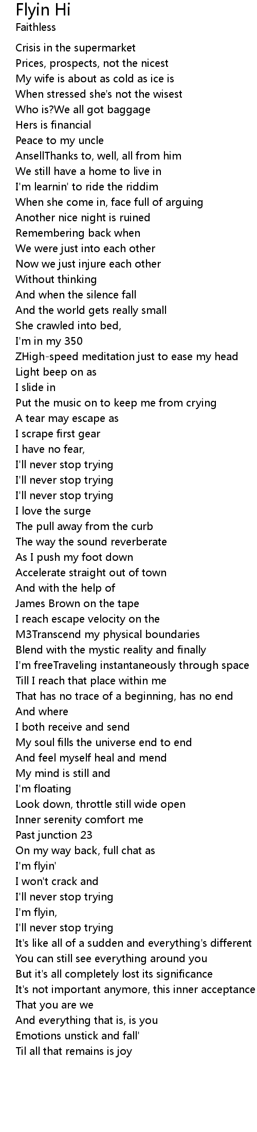 | I'm flyin, | |