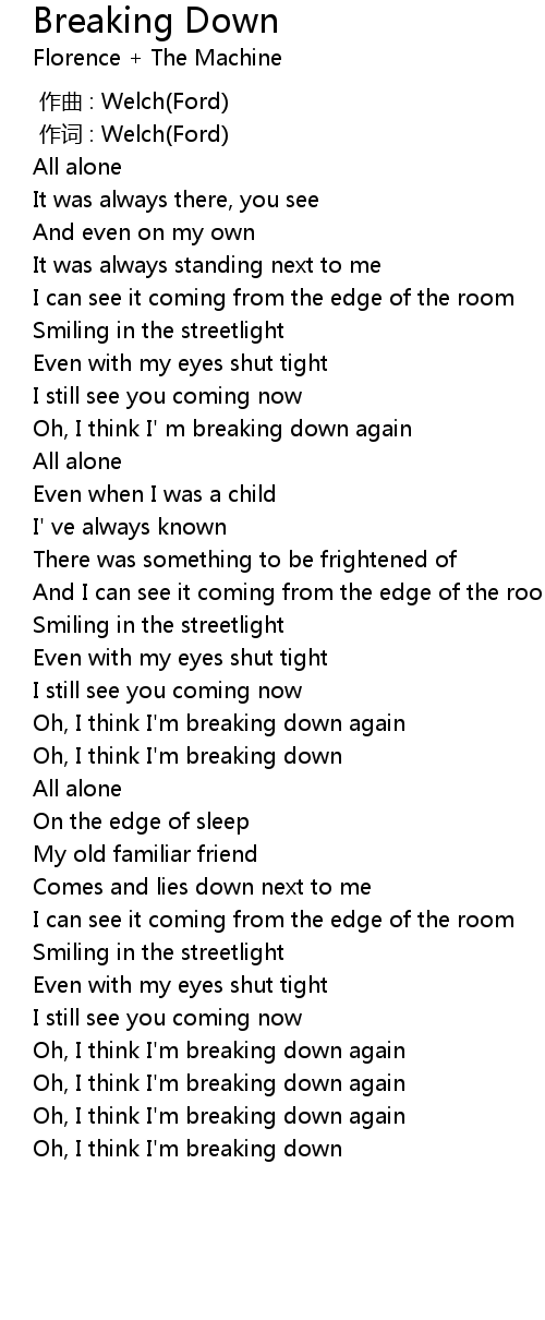 | [01:35.51] | Oh, I think I' m breaking down |