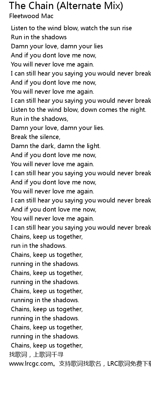 | [00:56.69] | I can still hear you saying you would never break the chain. |