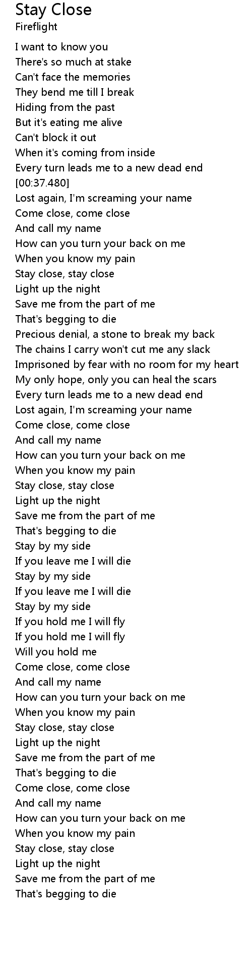 | [03:02.480] | Stay close, stay close |