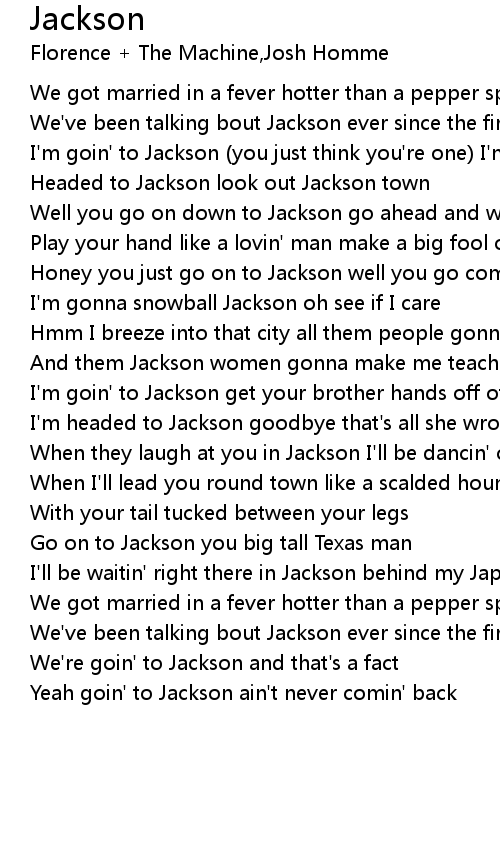 I'm goin' to Jackson (you just think you're one) I'm gonna mess around |