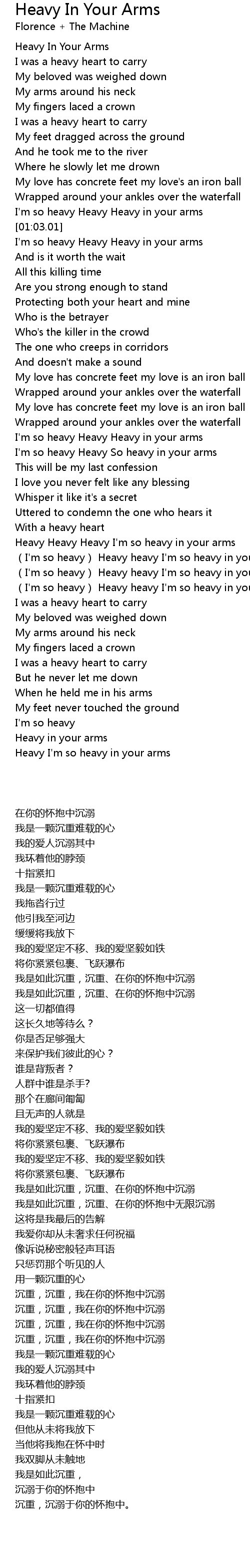 | [03:01.20] | Heavy Heavy Heavy I'm so heavy in your arms |