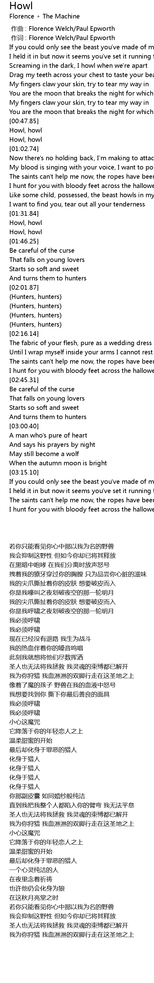 | [01:32.36] | Howl, howl |