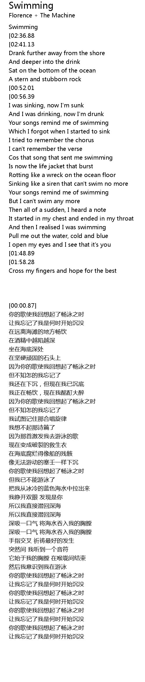 Cos your songs remind me of swimming |