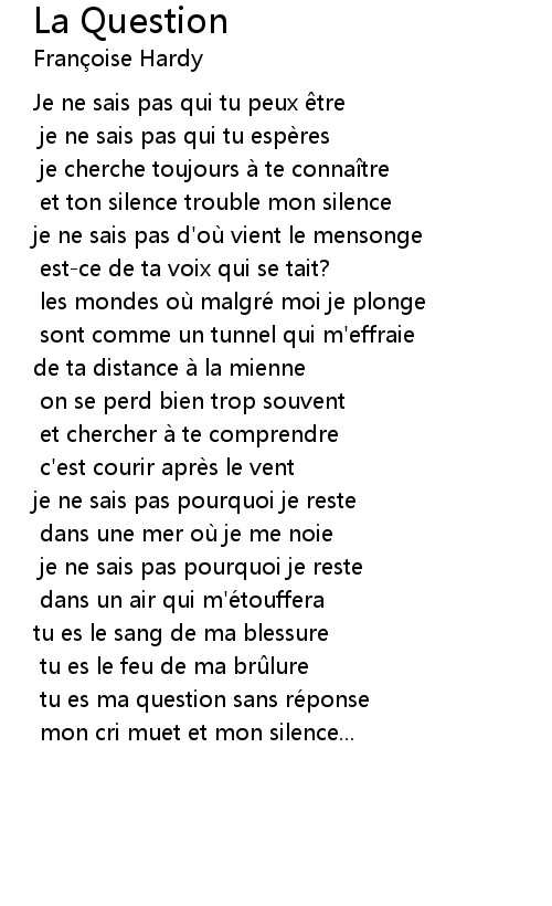 | tu es ma question sans réponse | |