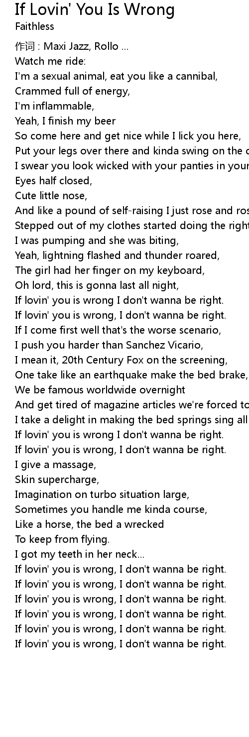 | If lovin' you is wrong, I don' t wanna be right. | |