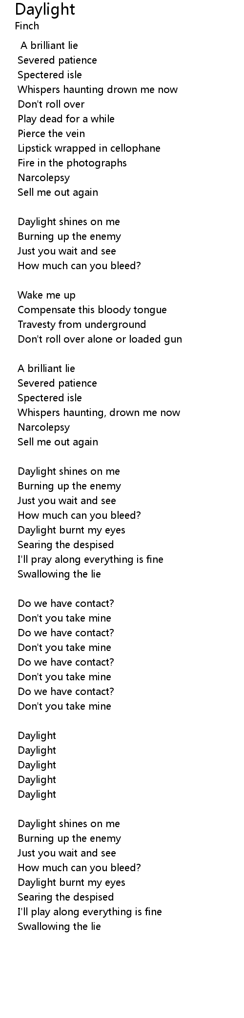 | Daylight burnt my eyes | |
