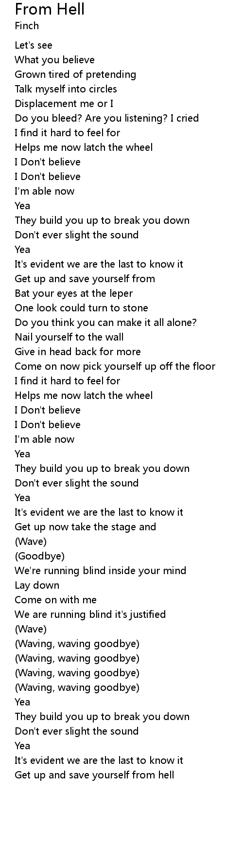 | Do you bleed? Are you listening? I cried | |