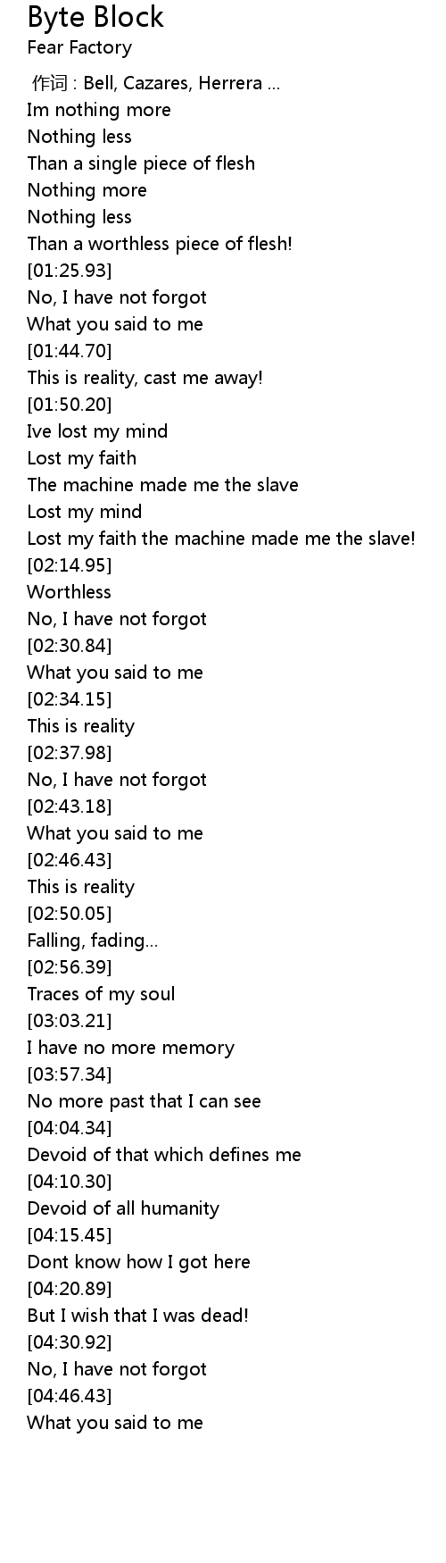 | [02:10.33] | Lost my faith the machine made me the slave! |