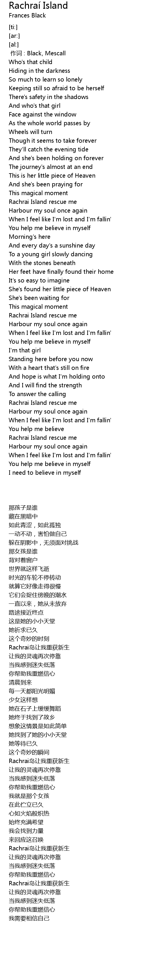 | [01:11.77] | Rachrai Island rescue me |