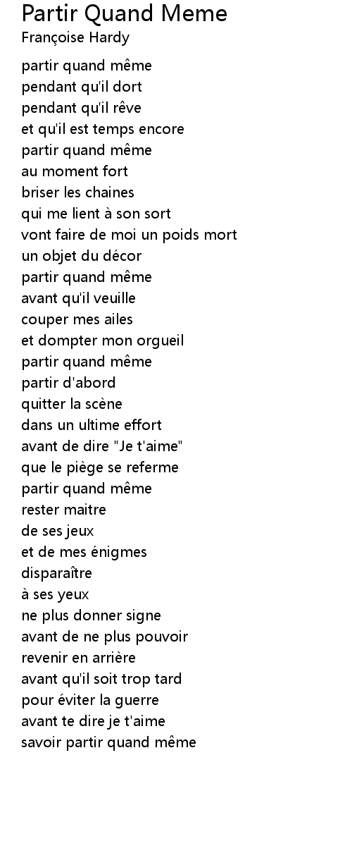 | Song | Partir Quand Meme |