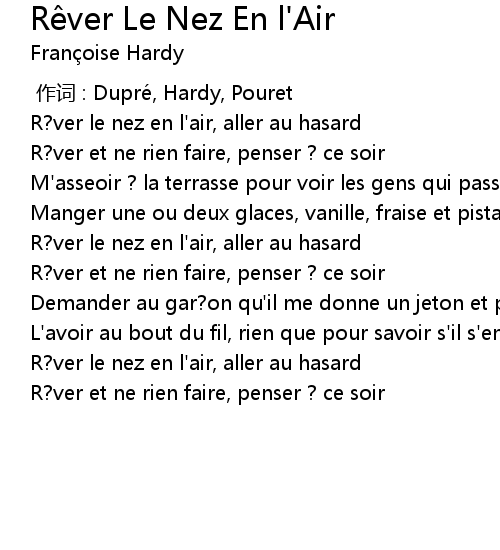 | [00:49.13] | R?ver le nez en l'air, aller au hasard |