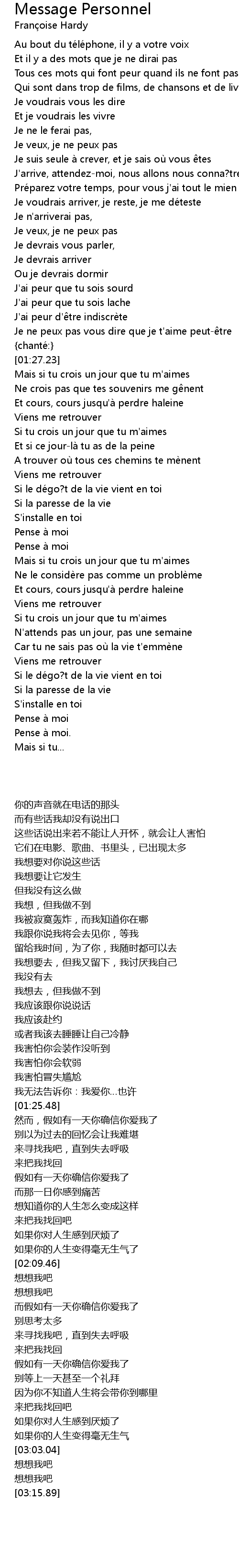 | [02:35.57] | Si tu crois un jour que tu m' aimes |