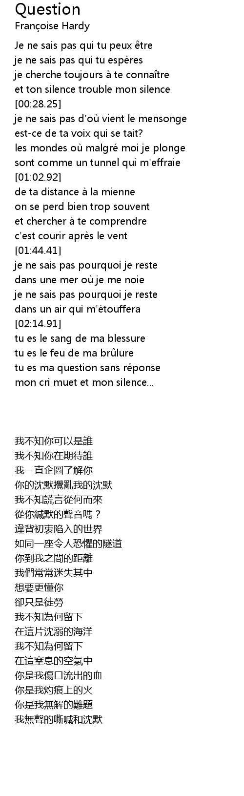| [02:37.18] | tu es ma question sans réponse |