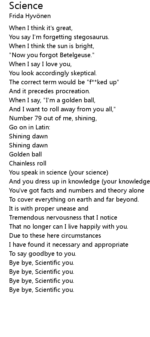 You speak in science (your science) |