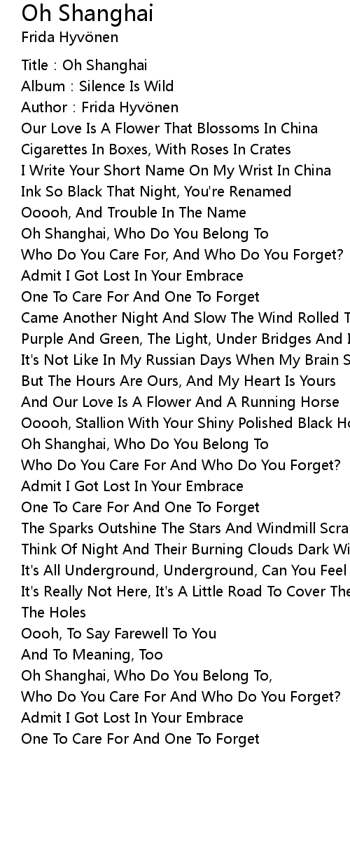 | [02:22.91] | Oh Shanghai, Who Do You Belong To |