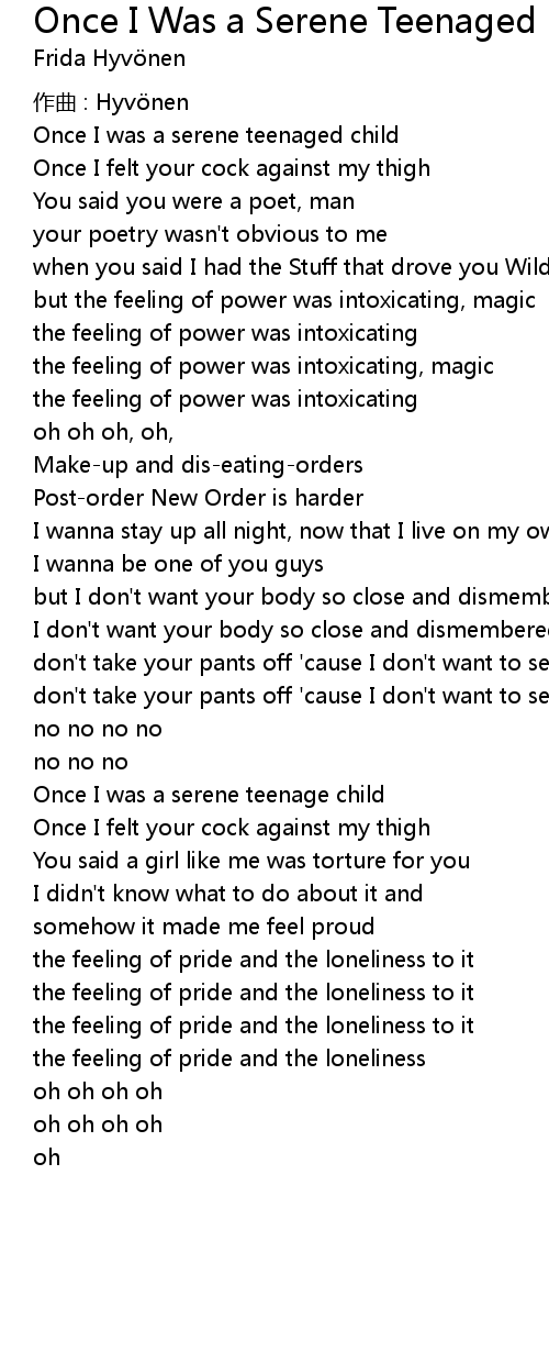 | Once I was a serene teenaged child | |