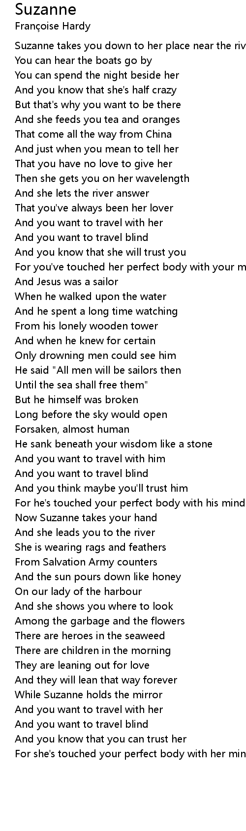 Now Suzanne takes your hand |