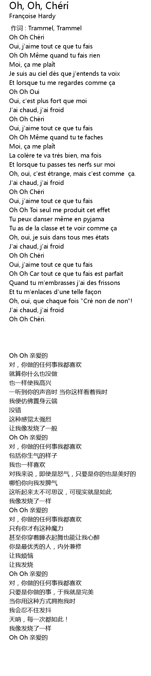 | [00:42.21] | Oh Oh M me quand tu te faches |
