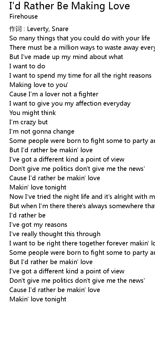 | But I' d rather be makin' love | |