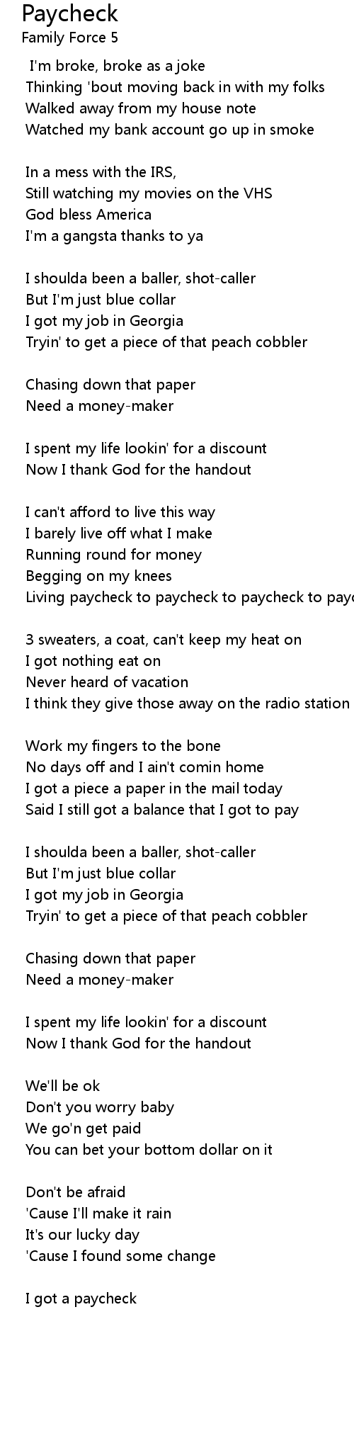 Living paycheck to paycheck to paycheck to paycheck |
