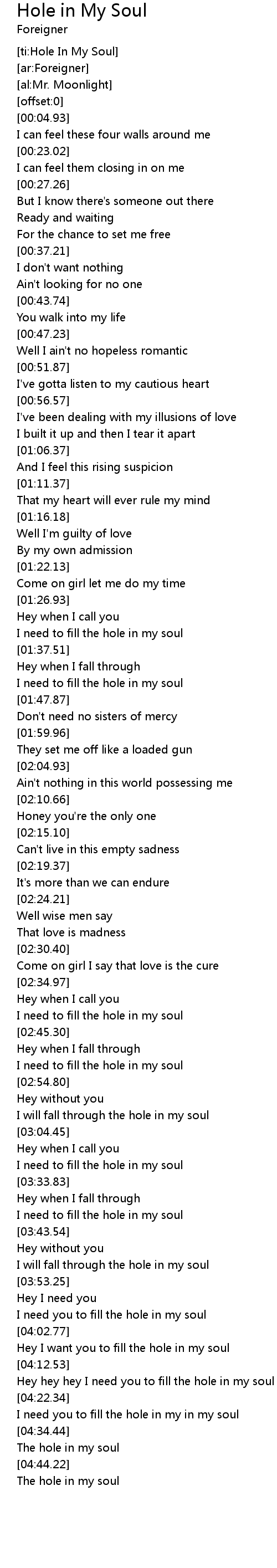 [04:14.06] Hey hey hey I need you to fill the hole in my soul