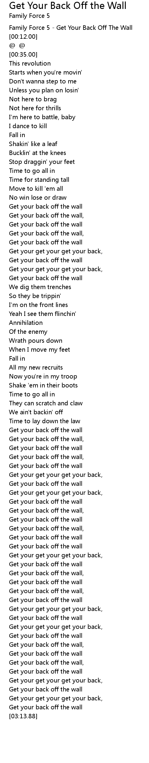 Get Your Back Off the Wall Lyrics