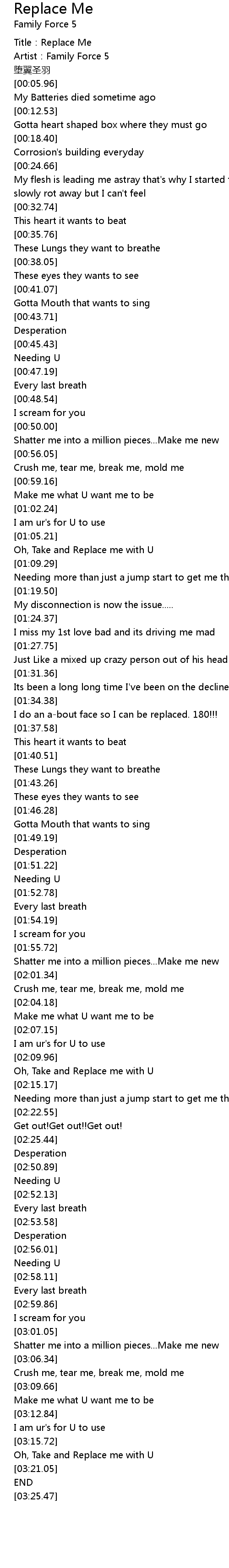 | [00:03.51] | Title: Replace Me |