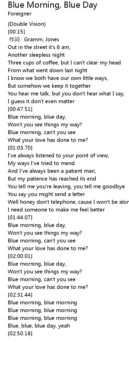 | [02:44.35] | Blue, blue, blue day, yeah |