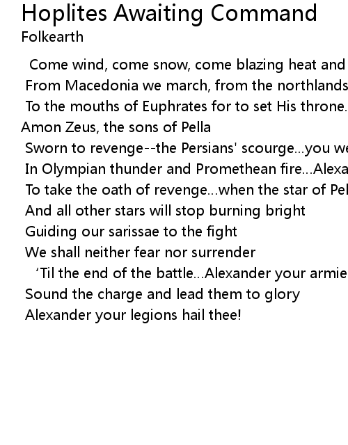 | In Olympian thunder and Promethean fire Alexander your hoplites are waiting | |