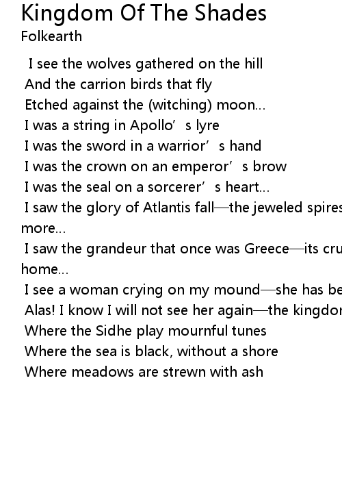 | I saw the glory of Atlantis fall the jeweled spires that would gleam no more | |