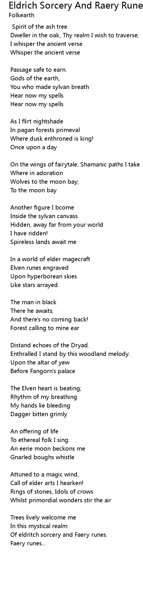 Of eldritch sorcery and Faery runes. |