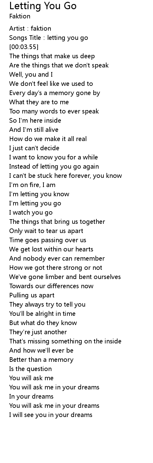 | [01:20.71] | I'm letting you go |