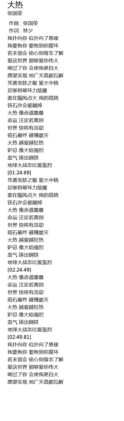 | [01:11.69] | dà rè yuè ài yuè kuáng rè |
