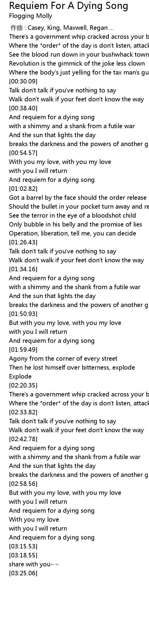 | [01:20.64] | Only bubble in his belly and the promise of lies |